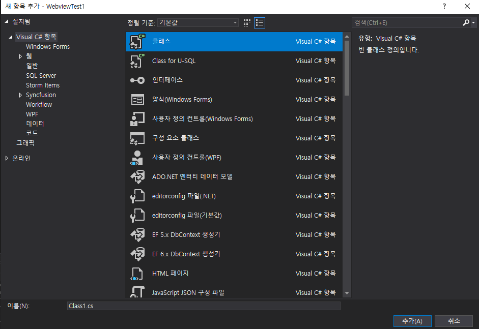 클래스를 추가하고 [솔루션 빌드]를 진행하면 [도구 상자]에서 컨트롤을 추가할 수있다.