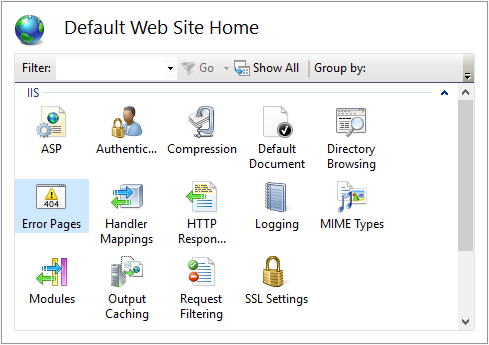 IIS 관리자를 사용하여 이러한 설정을 구성 할 수 있습니다. 이렇게하려면 IIS 관리자를 열고 스크립트 메시지를 사용하거나 사용하지 않도록 설정할 사이트 또는 응용 프로그램으로 이동 한 다음 Error Pages 기능 을 두 번 클릭합니다 .