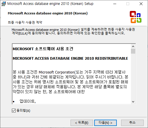 Microsoft Access Database Engine 2010 재배포 가능 패키지