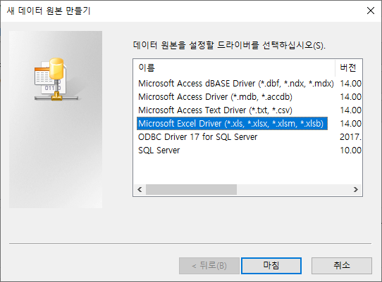 5. Microsoft Excel Driver 항목 선택 후 마침